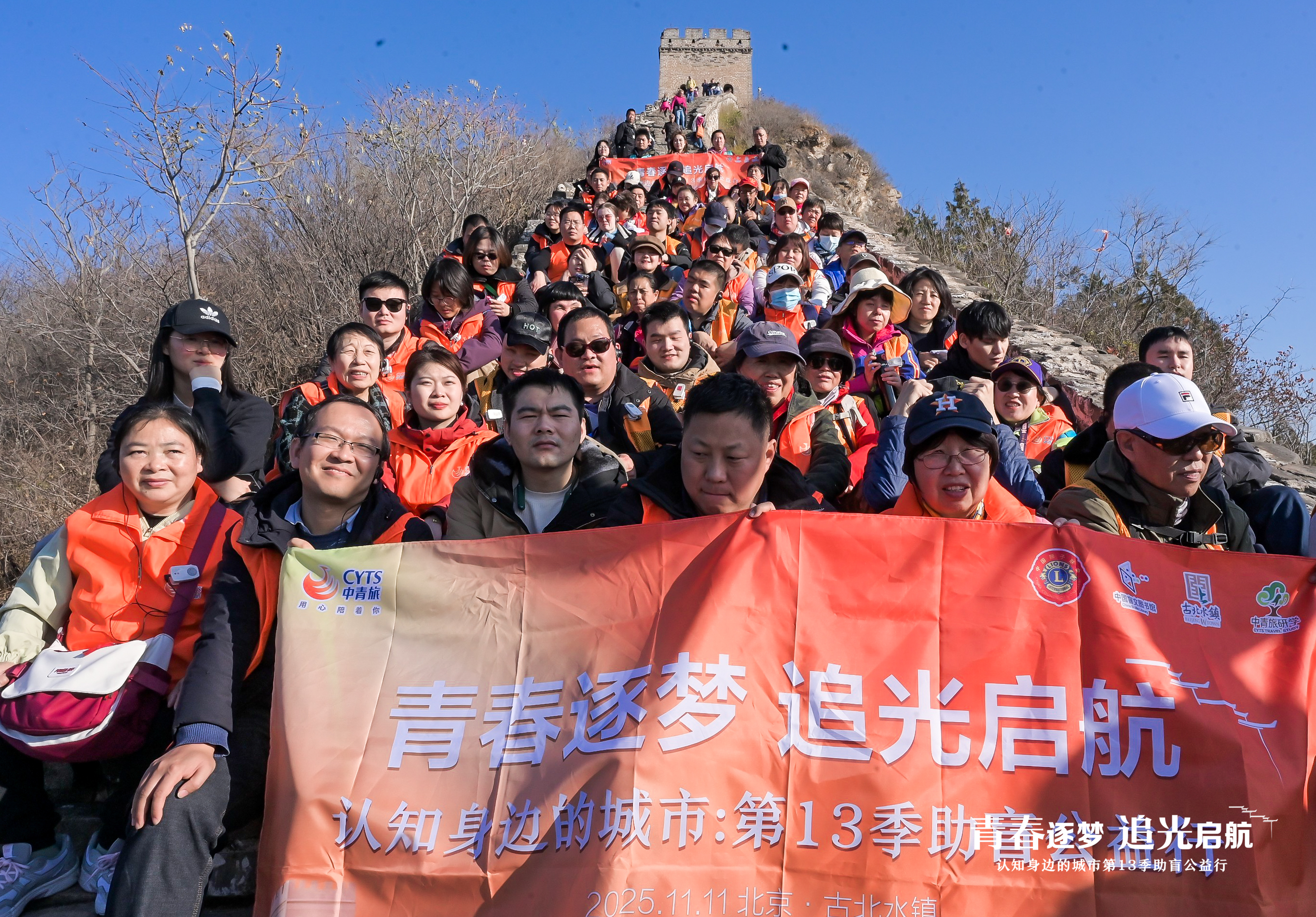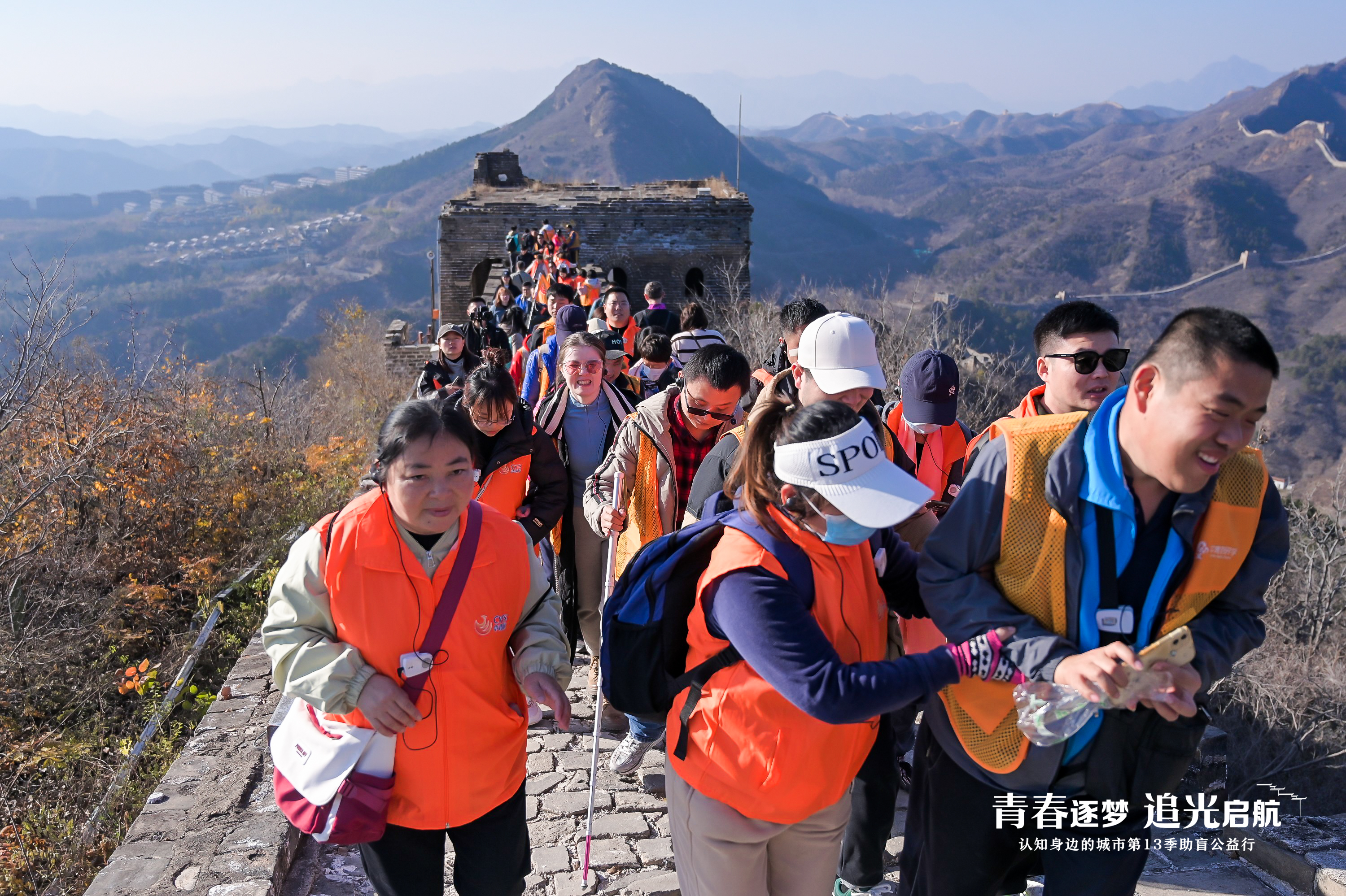 在司马台长城的石阶陡缓间,志愿者的手掌稳稳托着视障人士的手肘。当指尖轻触斑驳城墙,耳边传来温柔的解说:“这是明代的砖,风正吹过烽火台。” 脚步循着指引拾级而上,呼吸与山风交织,笑容里满是信任与雀跃。长城的轮廓虽看不见,却在搀扶的温度、耐心的话语中,成了心底最清晰的风景。